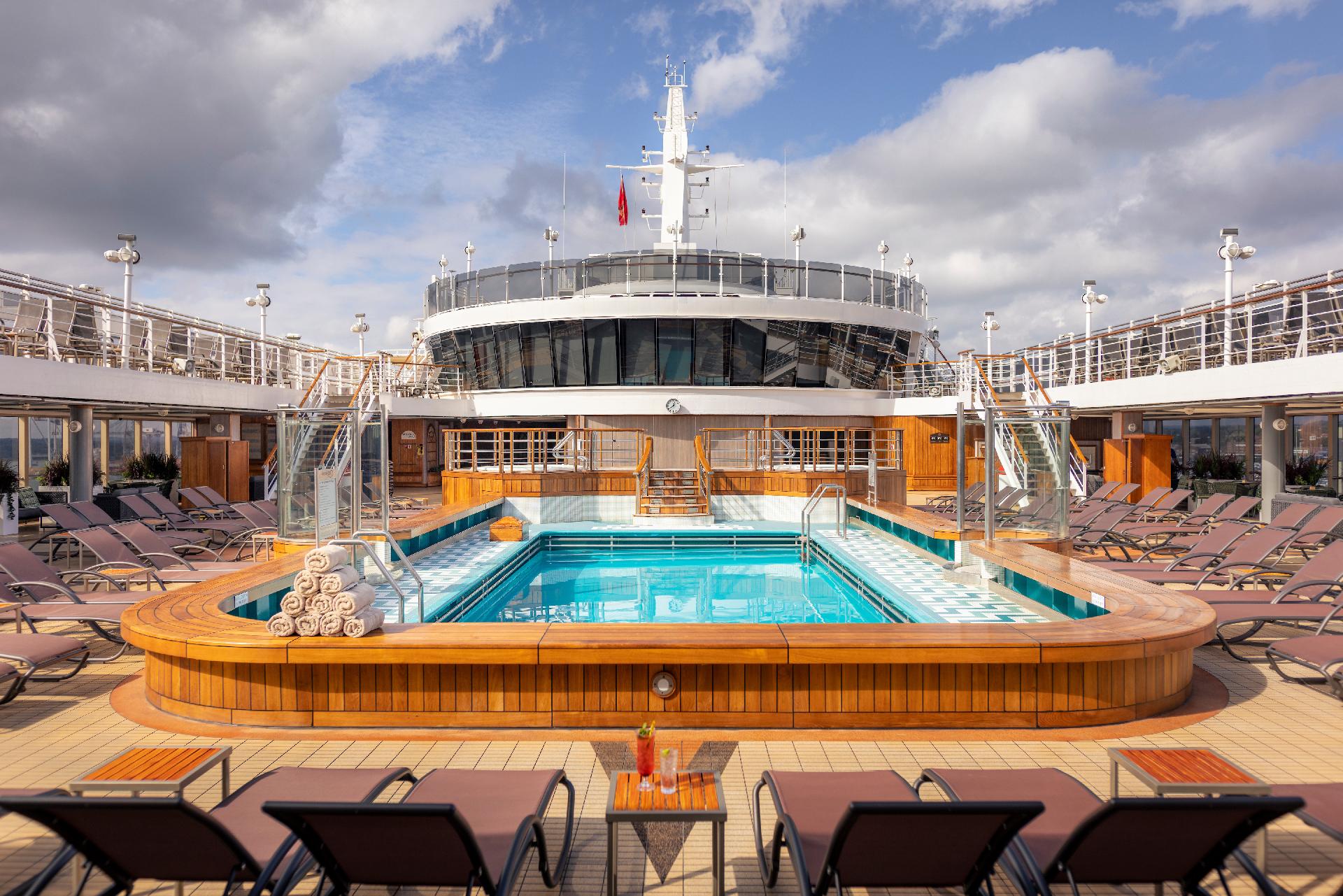 - Piscinas y jacuzzis: ideales para disfrutar del sol, nadar o relajarse al aire libre durante los días de navegación.